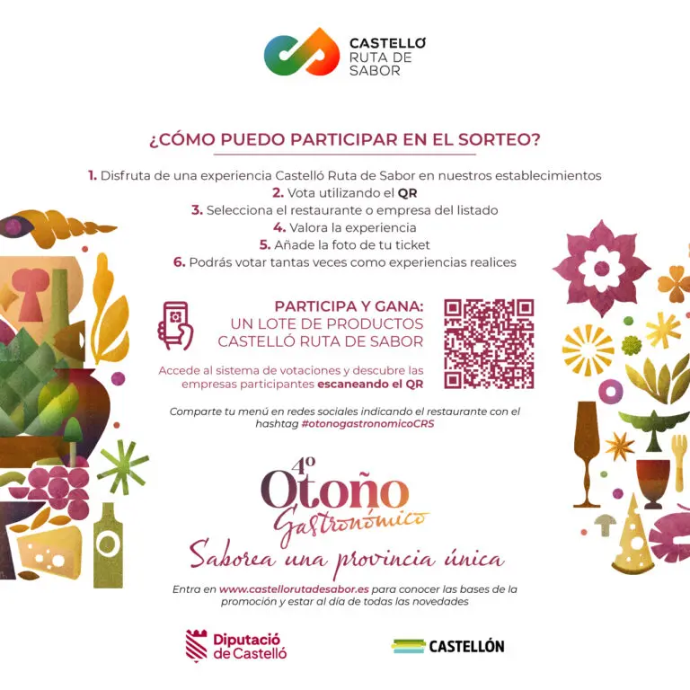 Del 23 de octubre al 23 de noviembre del 2025 disfruta de experiencias Castelló Ruta de Sabor con las mejores propuestas gastronómicas de temporada: catas, visitas, rutas, menús, productos locales, etc. que ponen en valor los productos y empresas de la provincia…
