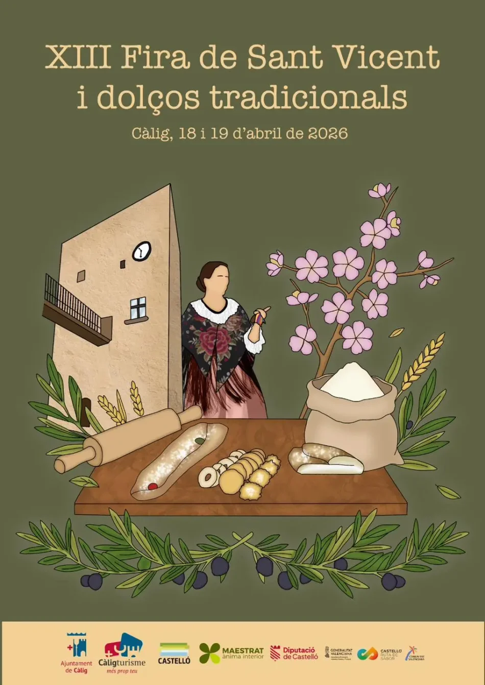 La XIII edición de la Feria de Sant Vicent y Dulces Tradicionales de Càlig, que tendrá lugar los días 18 y 19 de abril de 2026, se suma al calendario de experiencias imprescindibles de Castelló Ruta de Sabor, poniendo en valor la riqueza gastronómica del interior del Baix Maestrat.
