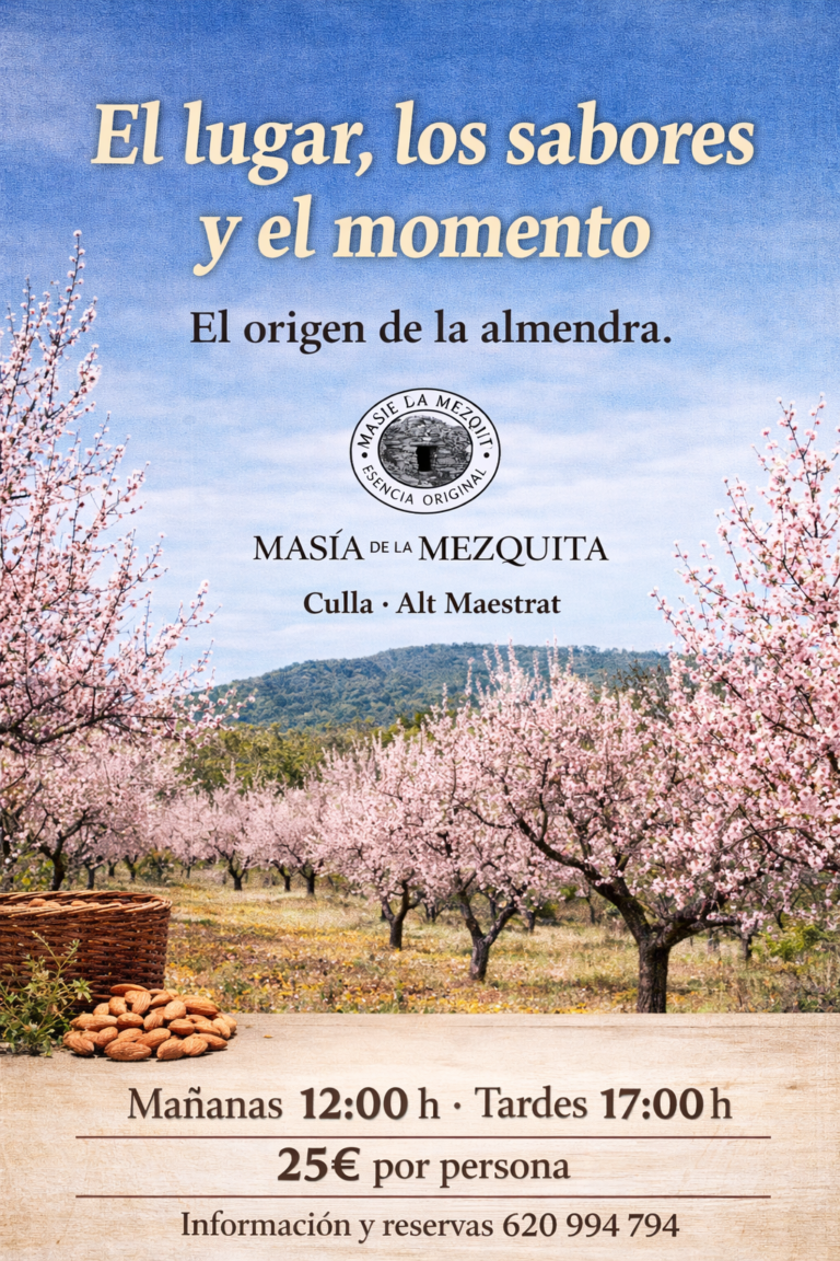 Elegir el lugar forma parte de la experiencia, en este caso el lugar son los campos de almendros donde se aprende como nace la almendra, como se forma y se cultiva este fruto seco característico de nuestra comarca. A través de todos tus sentidos conocerás la vida de la almendra y al final la experiencia gastronómica cerrara esta visita única que no te dejara indiferente. Un momento para recordar.